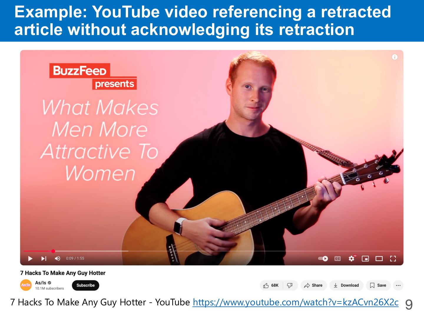 Example: YouTube video referencing a retracted article without acknowledging its retraction 9