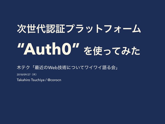 ࣍ੈೝূϓϥοτϑΥʔϜ “Auth0” ΛͬͯΈͨ ςΫʮ࠷ۙͷWebٕज़ʹ͍ͭͯϫΠϫΠޠΔձʯ 2018/09/27ʢʣ Takahiro Tsuchiya / @corocn