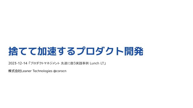 捨てて加速するプロダクト開発 2023-12-14「プロダクトマネジメント 先達に倣う実践事例 Lunch LT」 株式会社Leaner Technologies @corocn