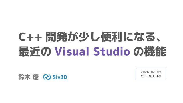 C++ 開発が少し便利になる、 最近の Visual Studio の機能 鈴木 遼 2024-02-09 C++