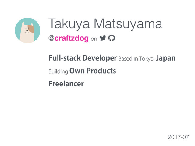 Takuya Matsuyama @craftzdog on 2017-07 'VMMTUBDL%FWFMPQFS#BTFEJO5PLZP +BQBO #VJMEJOH0XO1SPEVDUT 'SFFMBODFS