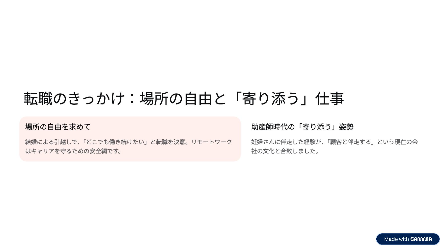 同じようにライフイベントとの両立に悩む方や、異業種からのキャリアチェンジを検討している方にとって、一歩踏み出すためのヒントや「こんな選択肢もあるんだ」という気づきを持ち帰っていただければ幸いです。