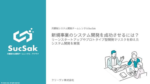 1. © creava corp. all right reserved. 月額制Web開発チームレンタル - サクサク 新規事業のシステム開発を成功させるには?