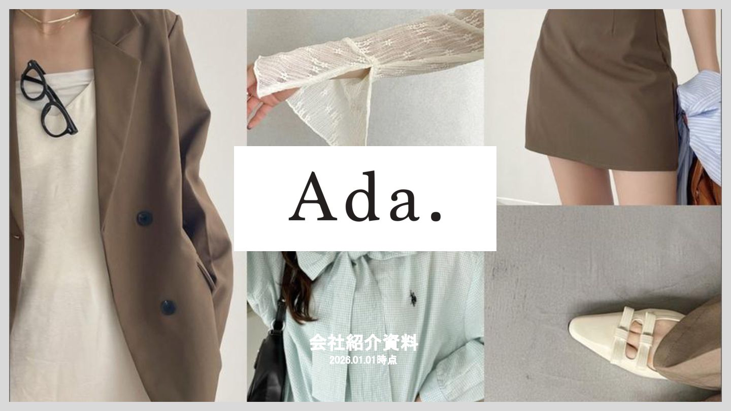 会社概要 ・社名 :Ada株式会社 ・設立 :2024年9月2日 ・事業内容:自社アパレルセレクトショップ「Ada.」の企画・運営