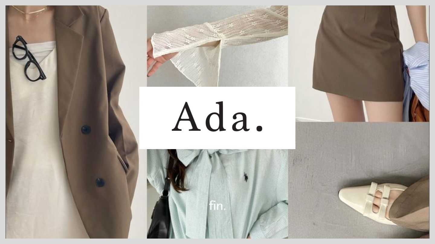 "自分らしさ"の追及にお手伝いをしていきたいと考えています。 365日を可愛く、おしゃれを楽しみたいすべての女性へ 今どきなアイテムを手にとりやすい価格で提案します ブランド「Ada.」について