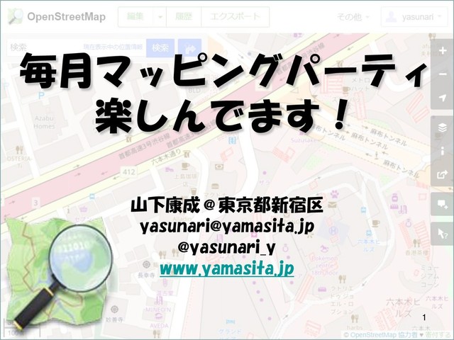 まとめ マッピングパーティは 楽しい! あなたの街でも 開催してみませんか!? 山下康成@東京都新宿区