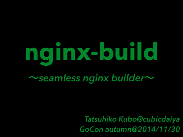 nginx-build ʙseamless nginx builderʙ Tatsuhiko Kubo@cubicdaiya GoCon autumn@2014/11/30