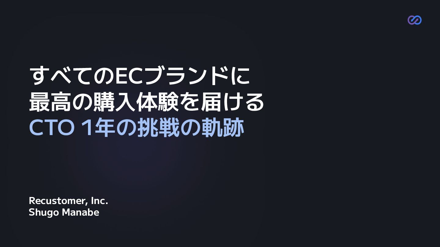 すべてのECブランドに 最高の購入体験を届ける CTO 1年の挑戦の軌跡 Recustomer, Inc. Shugo Manabe