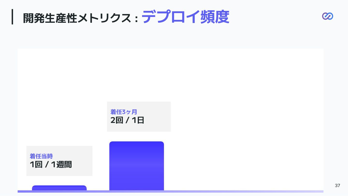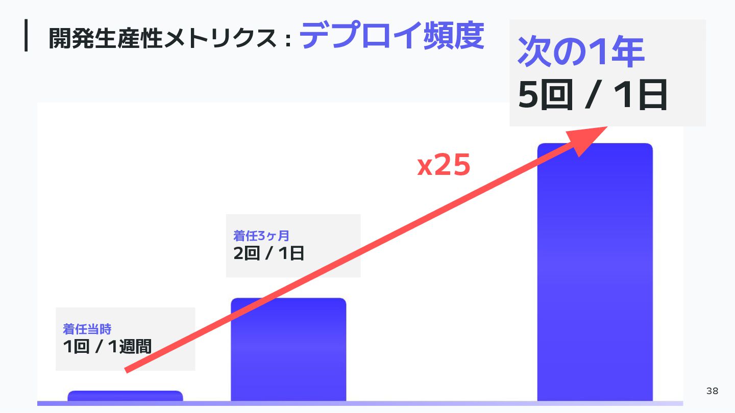 37 着任当時 1回 / 1週間 着任3ヶ月 2回 / 1日 開発生産性メトリクス
