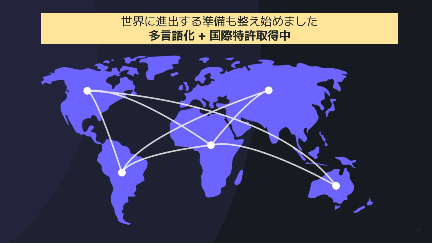 48 世界に進出する準備も整え始めました 多言語化 + 国際特許取得中