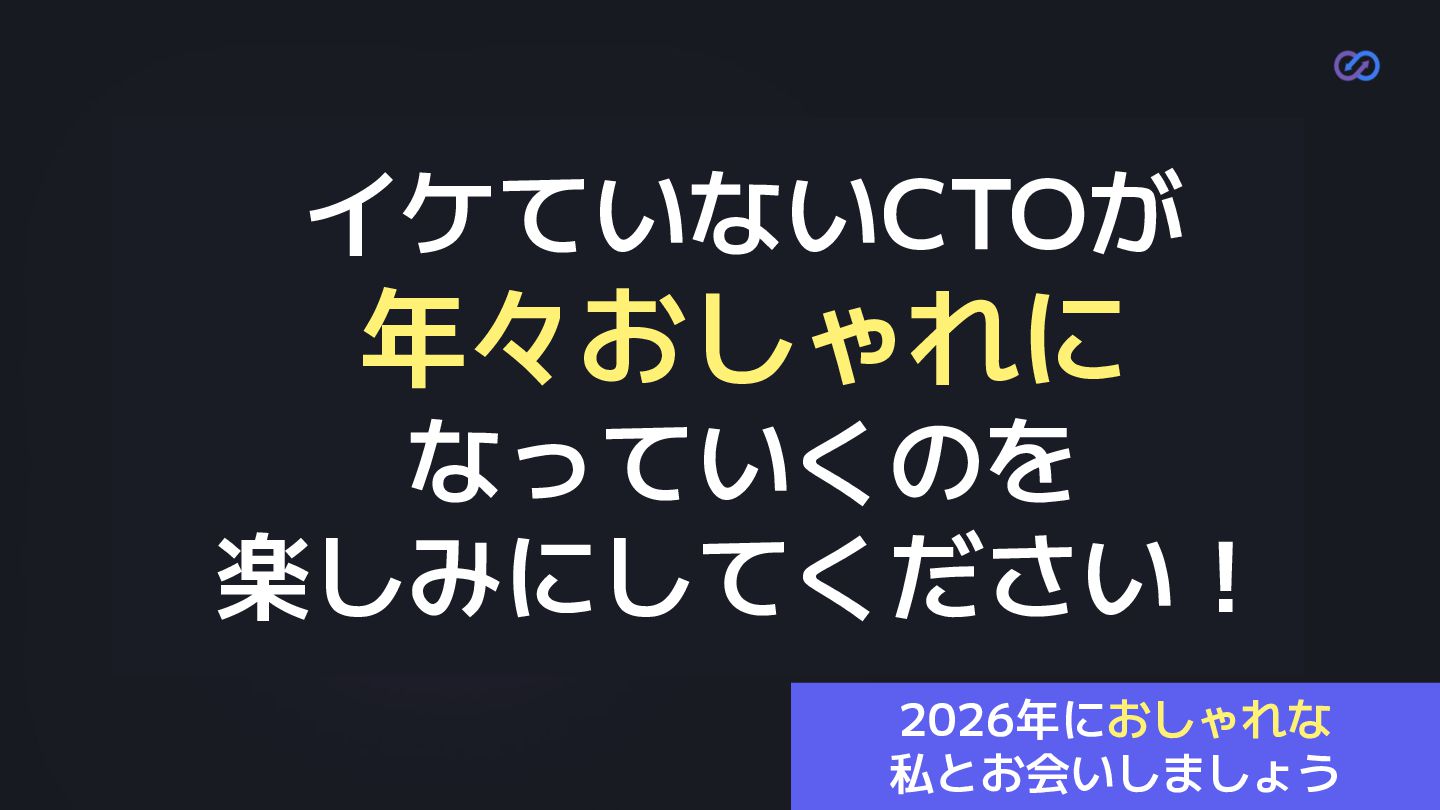 イケていないCTOが 年々おしゃれに なっていくのを 楽しみにしてください! 2026年におしゃれな 私とお会いしましょう