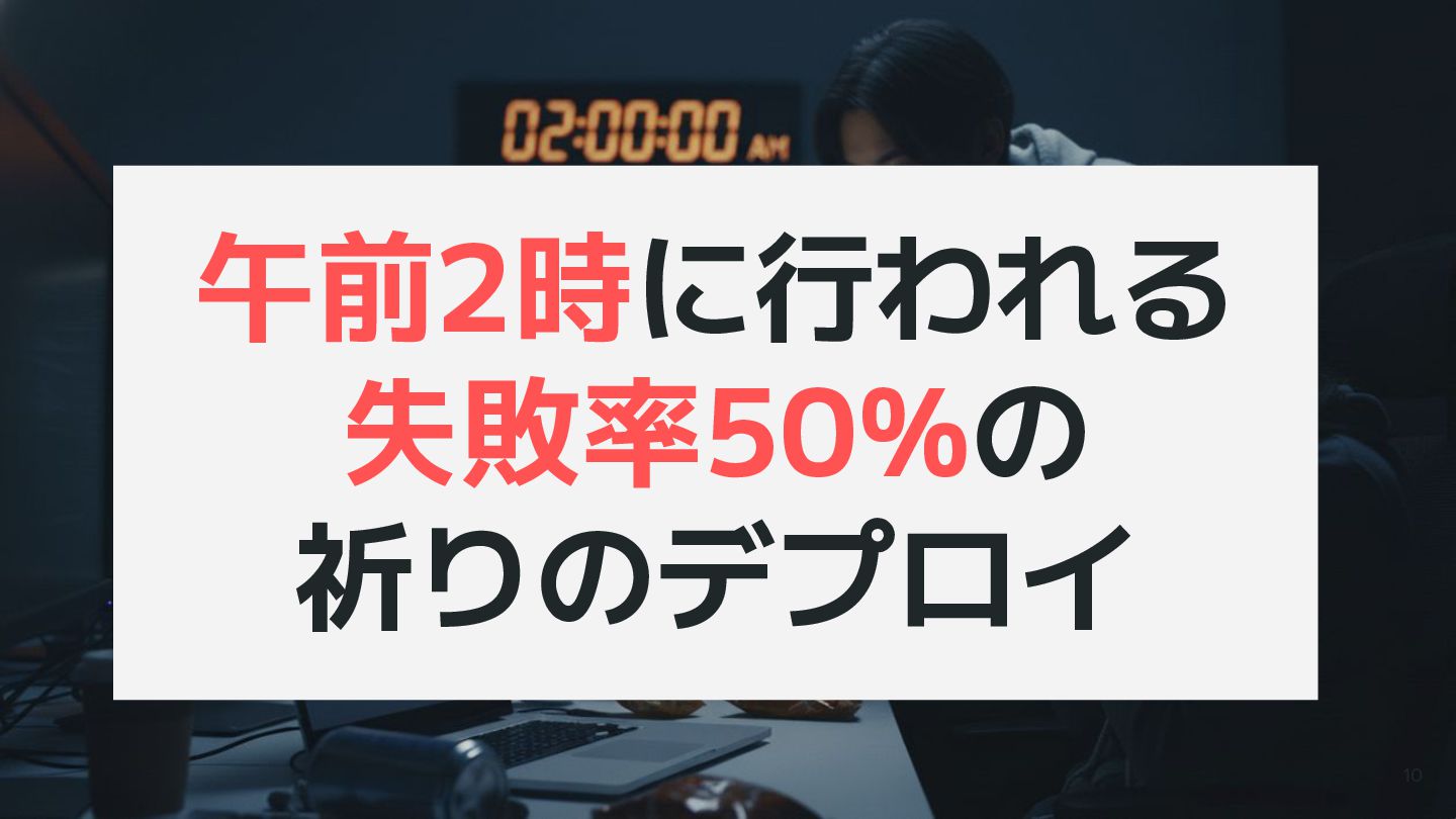 午前2時に行われる 失敗率50%の 祈りのデプロイ 10