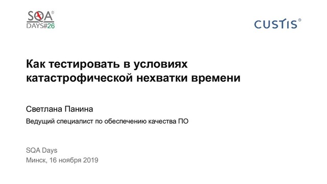 тестирования 3. Ограничить список приоритетных задач 4. Сократить смежные работы 5. Быстро сообщать о найденных багах 6. Подготовить и сохранить тестовые данные 25 часов 25 часов экономия времени 24/25