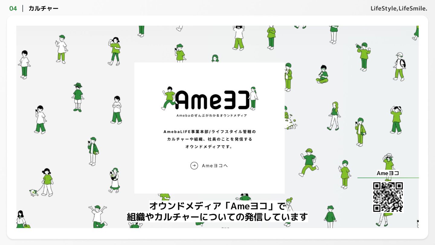 カルチャー 04 Ameヨコ オウンドメディア「Ameヨコ」で 組織やカルチャーについての発信しています