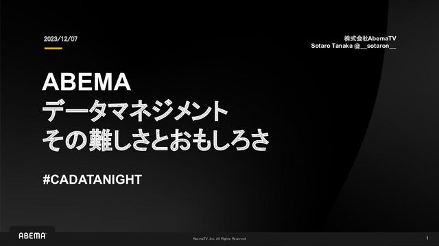 データマネジメントはプロダクト・組織・データをまたがる取り組みです。その難しさやおもしろさは、当然各社各プロダクトによって異なります。 ABEMAにおけるデータマネジメントについて、動画プロダクト・大規模組織・大規模データ特有の難しさやおもしろさに触れながら、ABEMAデータマネジメントチームでおこなっている実際の取り組みについてご紹介していきます。