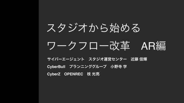 AR͔ΒϫʔΫϑϩʔΛม͑Δ OPENREC ࢬ CyberBull খࣉ AbemaTV ۙ౻ ͳͥɺͦͷٕज़͕ඞཁͳͷ͔ʁɹɹϫʔΫϑϩʔΛม͑ɺۀքΛม͍͑ͯ͘