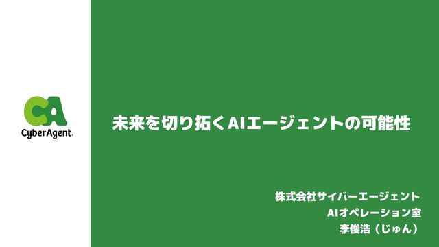 未来を切り拓くAIエージェントの可能性 株式会社サイバーエージェント AIオペレーション室 李俊浩(じゅん)
