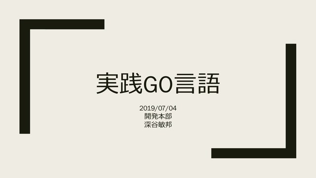 実践GO言語 2019/07/04 開発本部 深谷敏邦