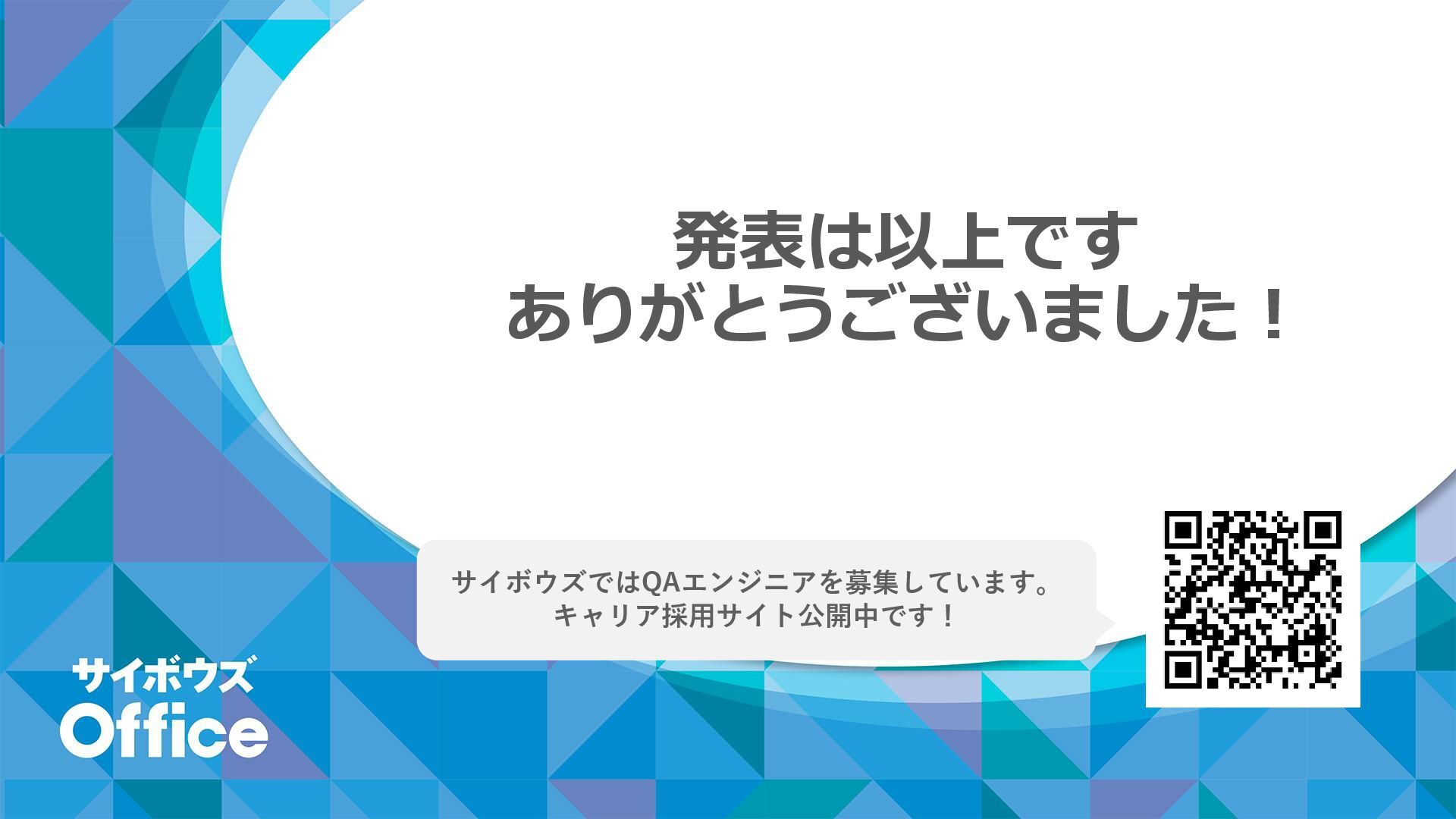 サイボウズではQAエンジニアを募集しています。 キャリア採用サイト公開中です! 発表は以上です ありがとうございました!