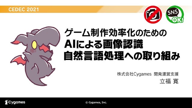 © Cygames, Inc. 講演内容 10/63ページ • AI導入の経緯・開発環境 • 物体検出・画像認識アルゴリズムを利用した自動タグ付け –