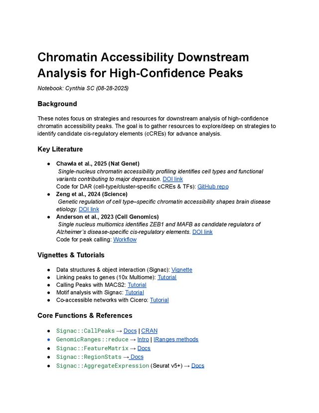 chromatin accessibility peaks. The goal is to gather resources to explore/deep on strategies to