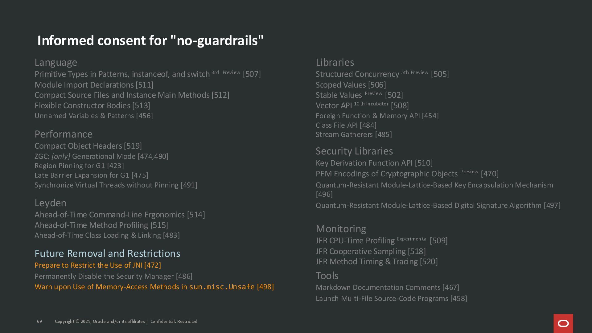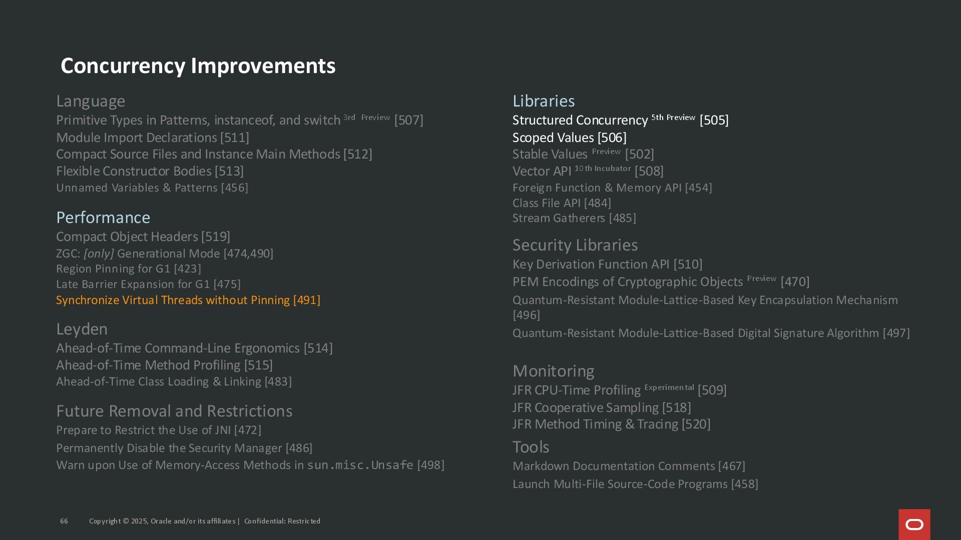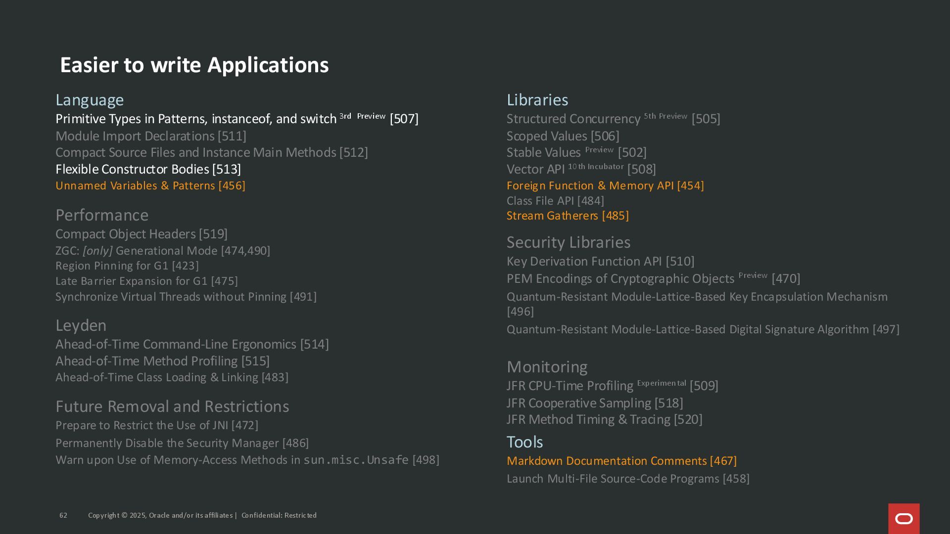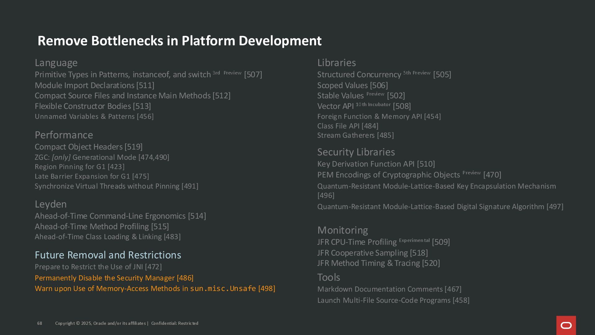 Revisaremos las nuevas características publicadas en el JDK 25, desde mejoras en el lenguaje, pasando por librerías de seguridad, monitoreo y performance.