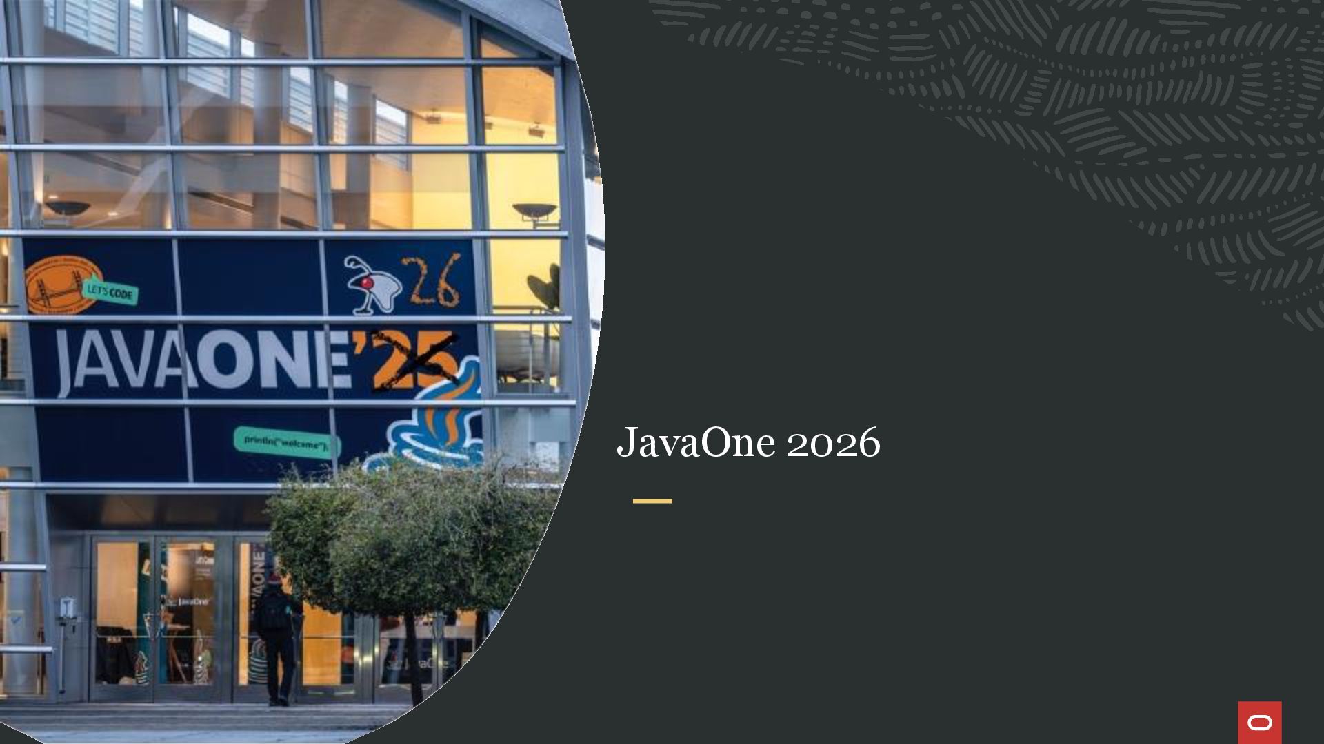 complementary technologies • Sessions are ~45% core JDK team + Oracle, ~55% Java ecosystem + Sponsors • Meet the Java Architects from Oracle's team • Livestreaming JDK 26 Launch and keynotes • Record all learning sessions for on-demand replay on youtube.com/java Core Tenants