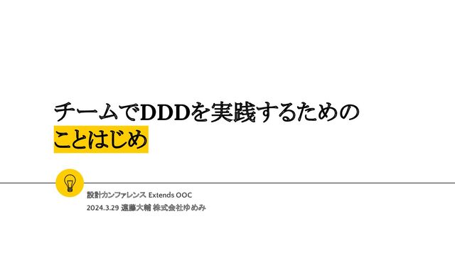 チームでDDDを実践するための ことはじめ 設計カンファレンス Extends OOC 2024.3.29 遠藤大輔 株式会社ゆめみ