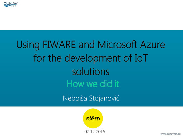 FIWARE i Microsoft Azure, primena u razvoju IoT rešenja