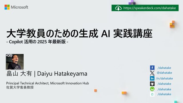 Workshop 用のURL: https://qiita.com/dahatake https://github.com/dahatake/GenerativeAI-Prompt-Sample-Japanese
