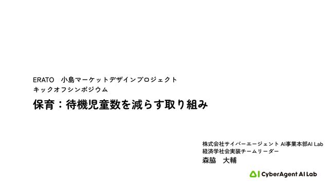 森脇 大輔 株式会社サイバーエージェント AI事業本部AI Lab ERATO 小島マーケットデザインプロジェクト キックオフシンポジウム 経済学社会実装チームリーダー 保育:待機児童数を減らす取り組み
