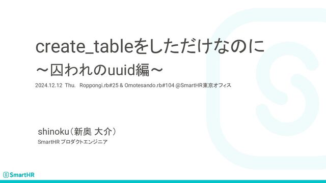 "gen_random_uuid()" }, force: :cascade do |t| t.string "name", null: false t.datetime "created_at", null: false t.datetime "updated_at", null: false end # idがデフォルトのまま・・・ create_table "work_log_types", force: :cascade do |t| t.string "name", null: false t.datetime "created_at", null: false t.datetime "updated_at", null: false end # にも関わらず関連先の外部キーはuuidにしてしまっている create_table "work_logs", id: :uuid, default: -> { "gen_random_uuid()" }, force: :cascade do |t| t.uuid "work_log_type_id" end