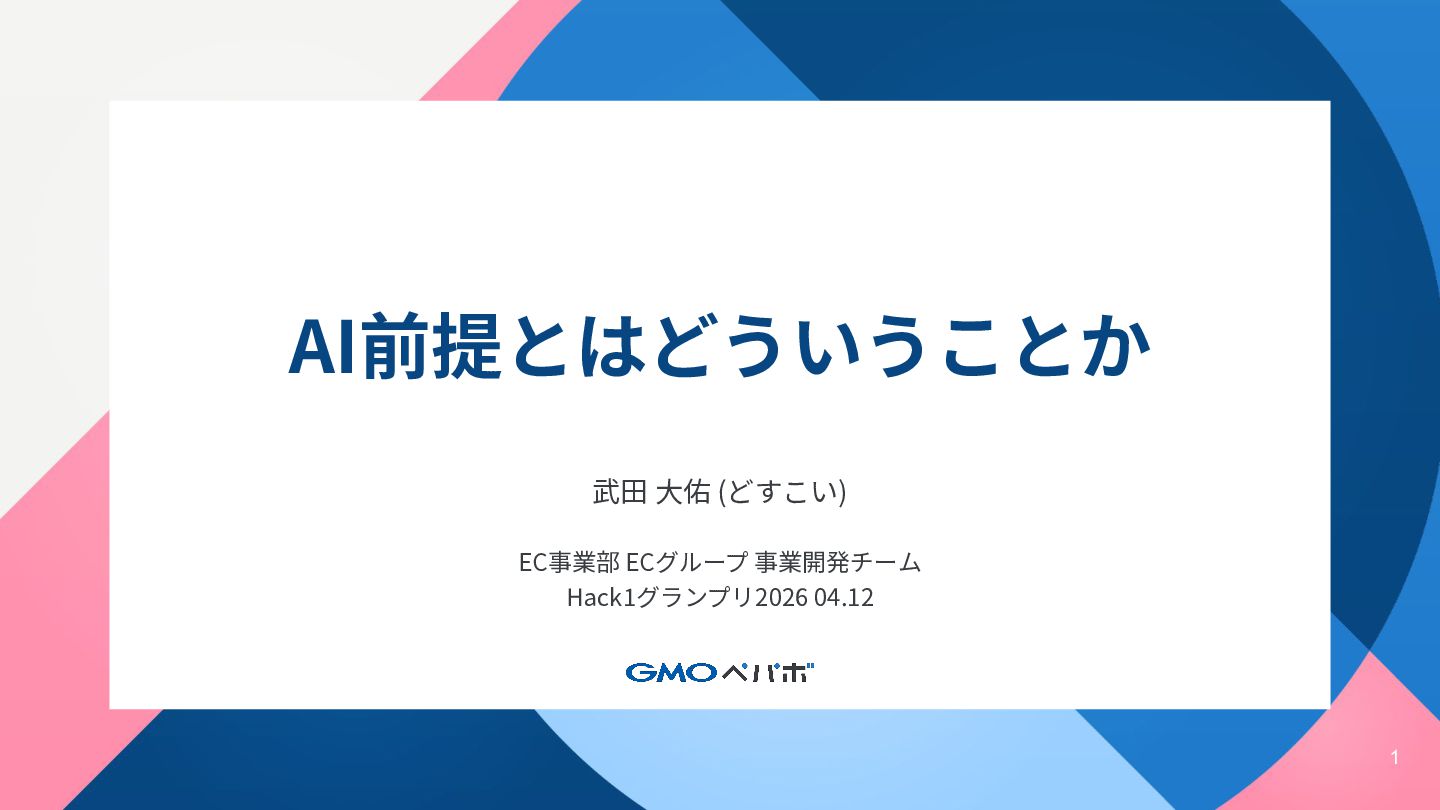 1 AI前提とはどういうことか 武⽥ ⼤佑 (どすこい) EC事業部 ECグループ 事業開発チーム Hack1グランプリ2026 04.12