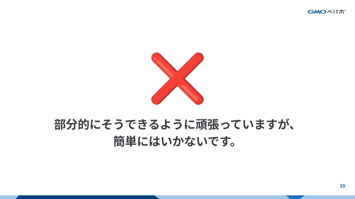 39 ❌ 部分的にそうできるように頑張っていますが、 簡単にはいかないです。 AIの強みと限界