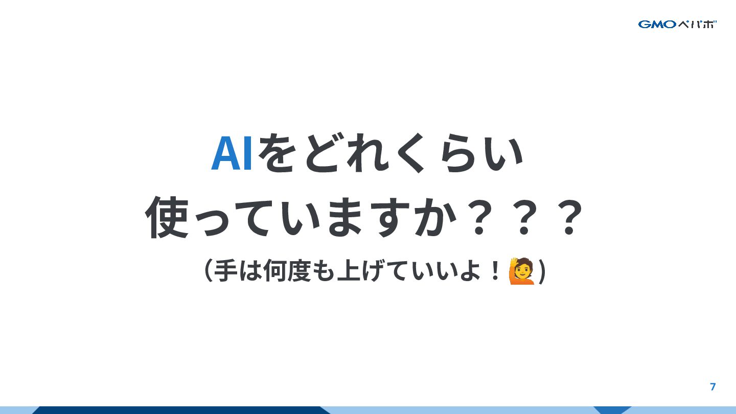 7 AIをどれくらい 使っていますか??? (⼿は何度も上げていいよ!🙋) AI前提における前提とは