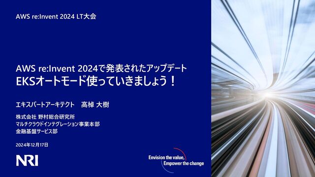 それすら管理不要になるオートモード!! ◼ワーカーノードもAWS管理に! ◼管理SWの管理もAWS!! ◼他の管理SWの導入もできる拡張性はある点もGood!!! コンテナ数に応じたワーカーノード の自動拡張&縮小 外部からの リクエスト待ち受け コンテナから外部ストレージ へのアクセス AWS LoadBalancer Controller EBS CSI Driver Karpenter コンテナの稼動環境 ワーカーノード (Bottlerocket OS) EKSオートモードで AWS管理に!!