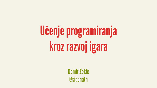 Učenje programiranja kroz razvoj igara Damir Zekić @sidonath
