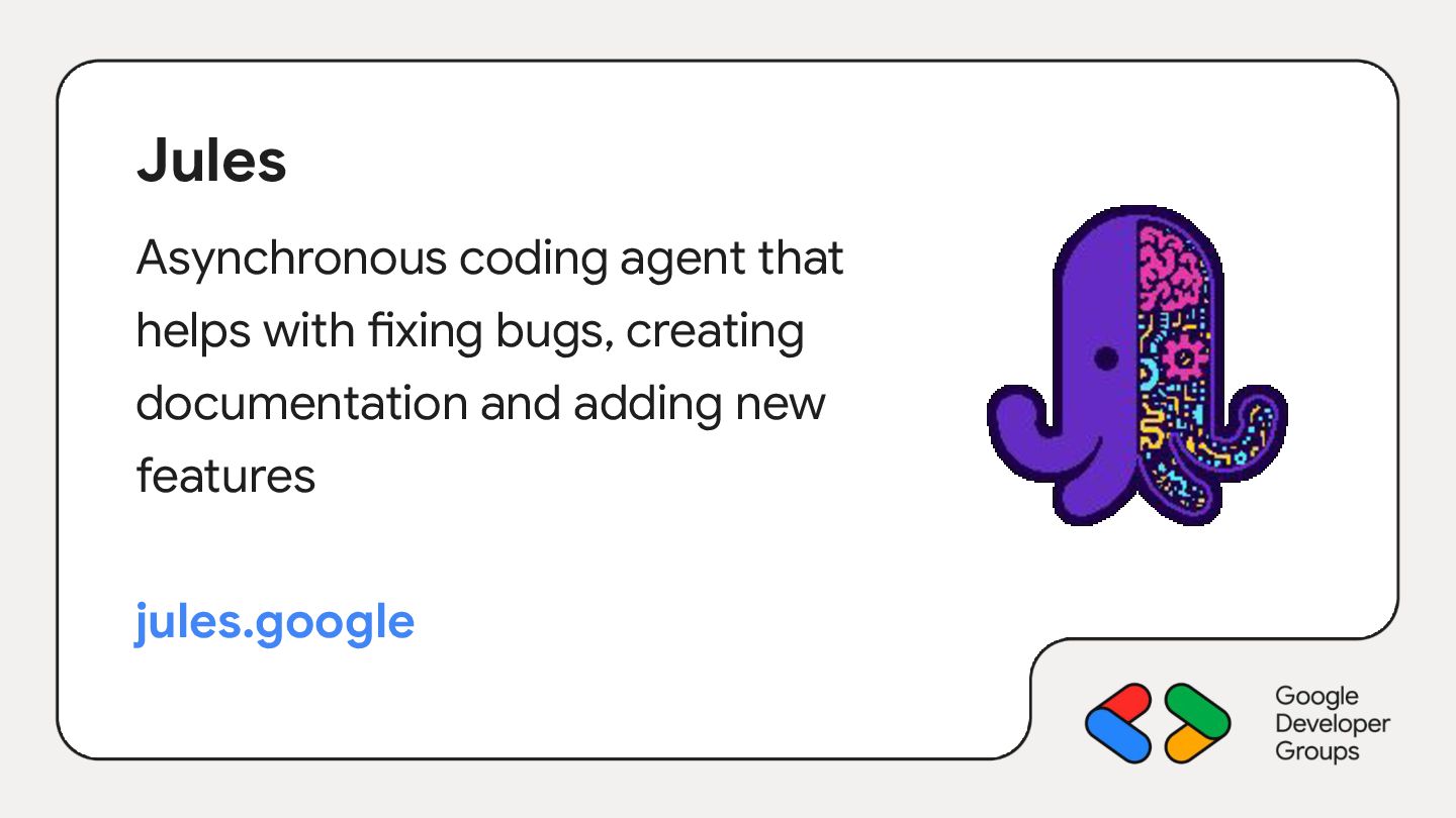 Jules Asynchronous coding agent that helps with fixing bugs, creating