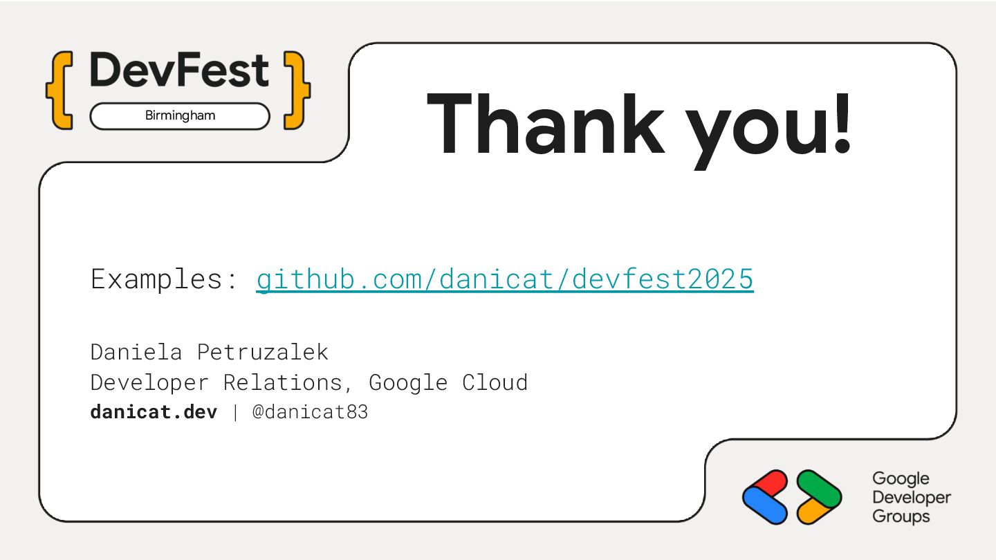 Birmingham Examples: github.com/danicat/devfest2025 Daniela Petruzalek Developer Relations, Google Cloud danicat.dev