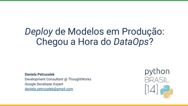 Esta talk foi apresentada na Python Brasil 14. Seu objetivo é apresentar o conceito de DataOps e o seu papel dentro do desafio de deploy de modelos de machine learning.
