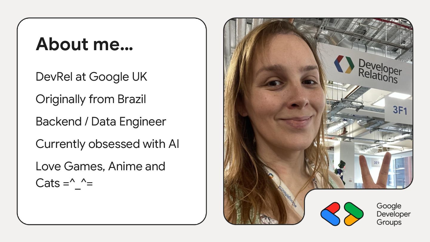 1. About me… DevRel at Google UK Originally from Brazil Backend