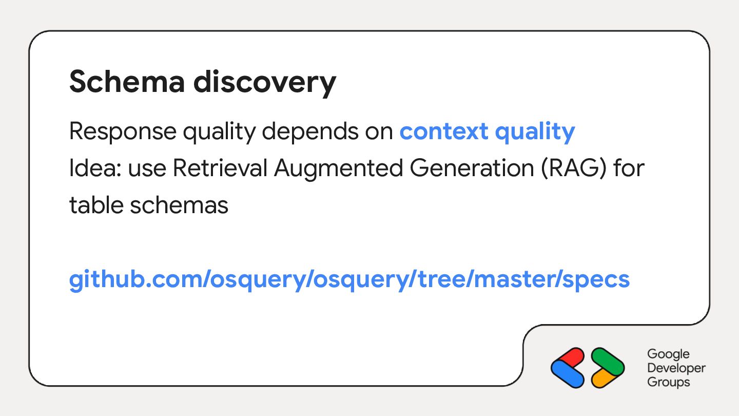 6. Schema discovery Response quality depends on context quality Idea: use