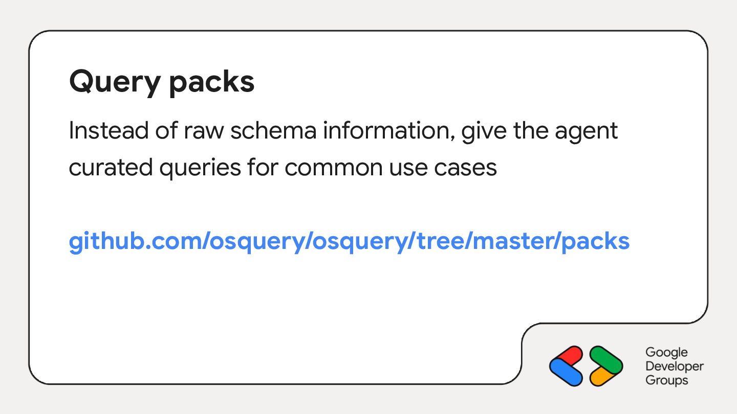 11. Query packs Instead of raw schema information, give the agent