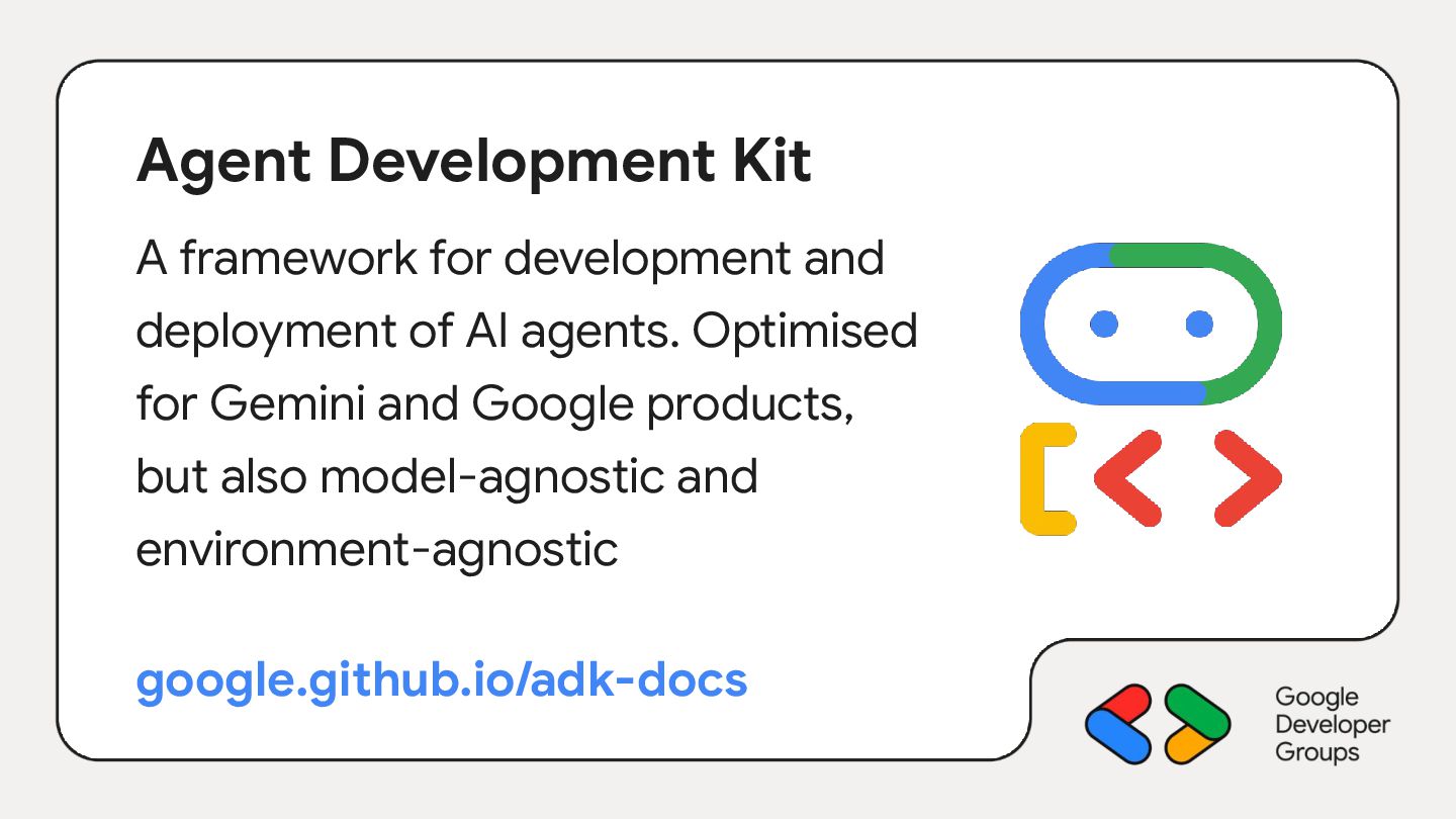 AI agents. Optimised for Gemini and Google products, but also model-agnostic and environment-agnostic google.github.io/adk-docs