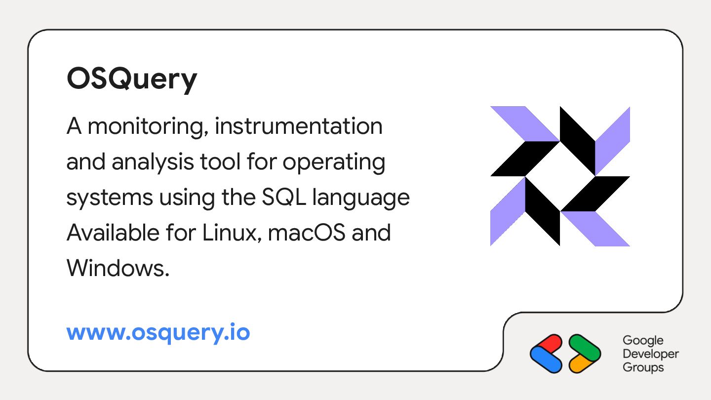 3. OSQuery A monitoring, instrumentation and analysis tool for operating systems