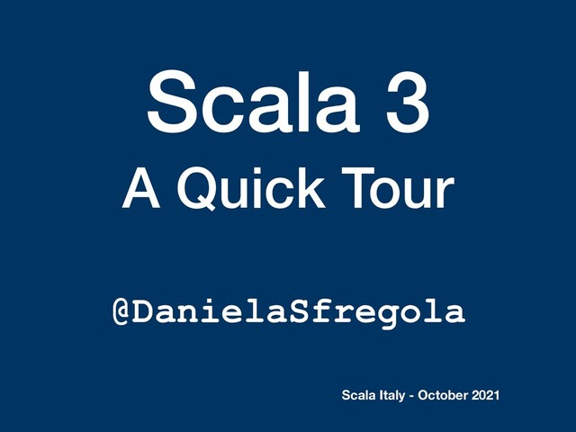 Scala 3 A Quick Tour @DanielaSfregola Scala Italy - October
