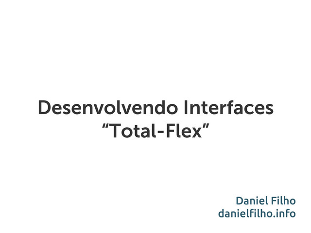 Apresentação curta sobre o desenvolvimento de interfaces, com enfoque no "flexbox" ou "CSS Flexible Box Layout Module" do CSS3