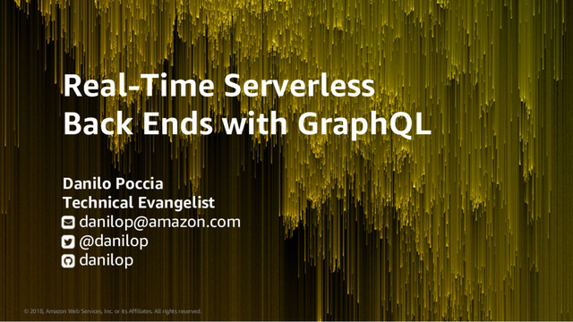 GraphQL is an open standard that lets you request, change, and subscribe to the exact data you need in a single network request. This makes prototyping and building data-intensive applications as simple as writing a few lines of code. In this session we’ll introduce the core concepts of GraphQL and put that into practice with real-world implementations using tools such as AWS Lambda and AWS AppSync to deliver real-time collaborative experiences for web and mobile apps, using multiple data sources, managing off-line users’ data, and resolving data conflicts.