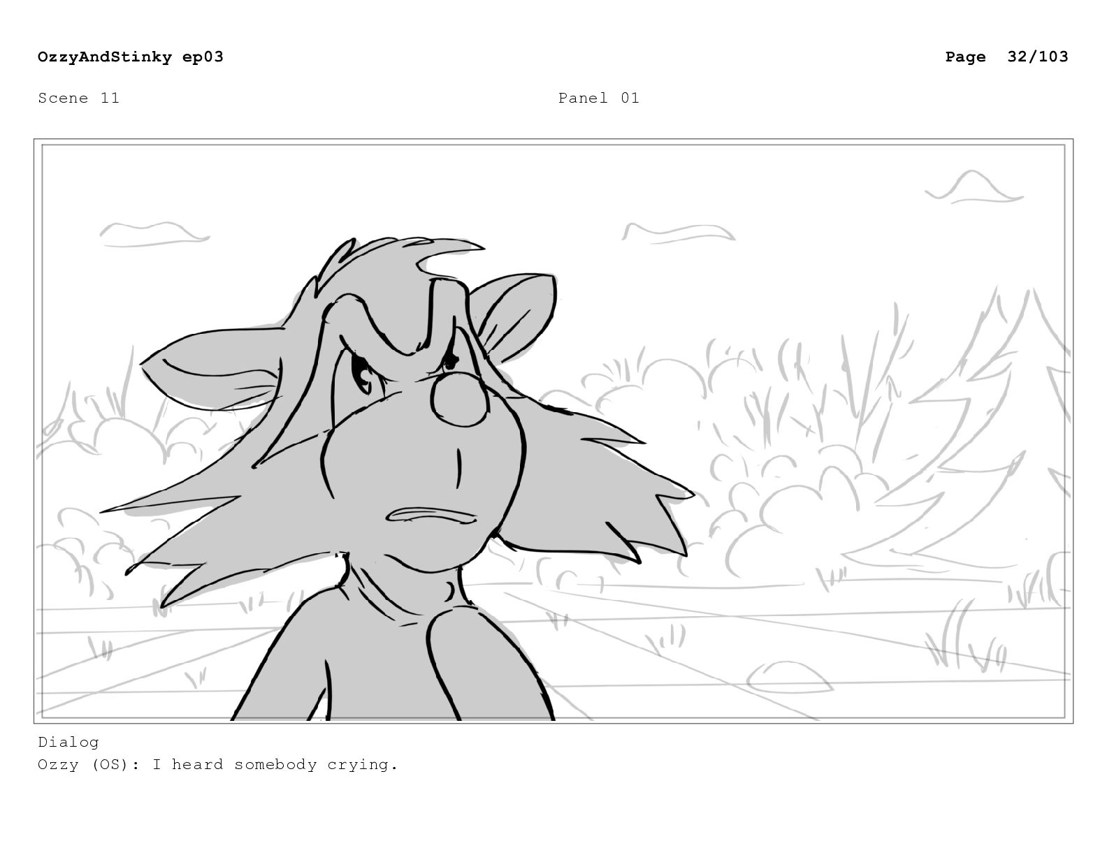 10. Scene 11 Panel 01 Dialog Ozzy (OS): I heard somebody