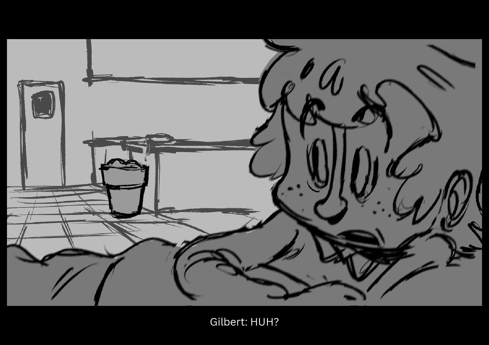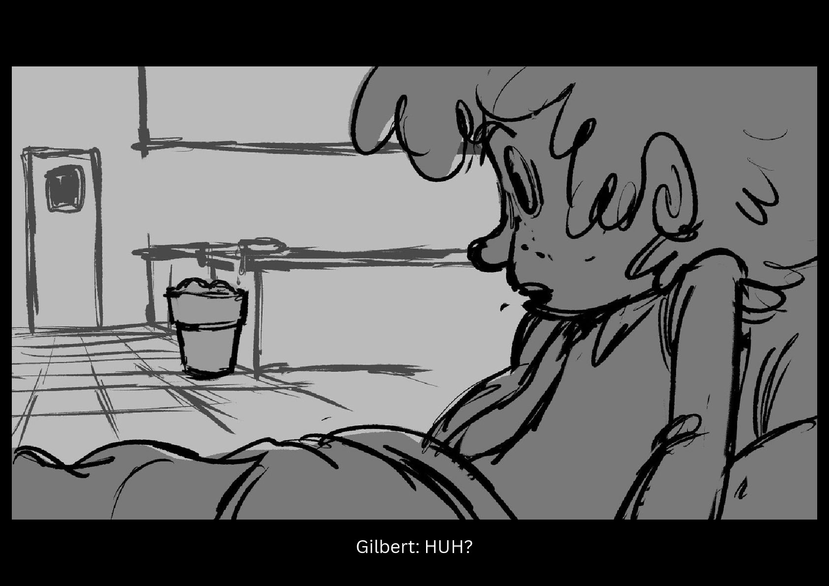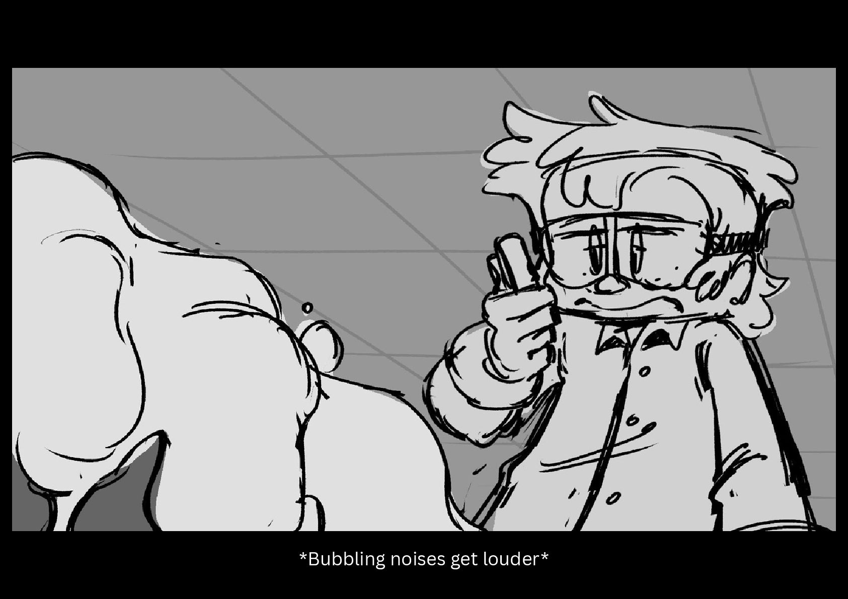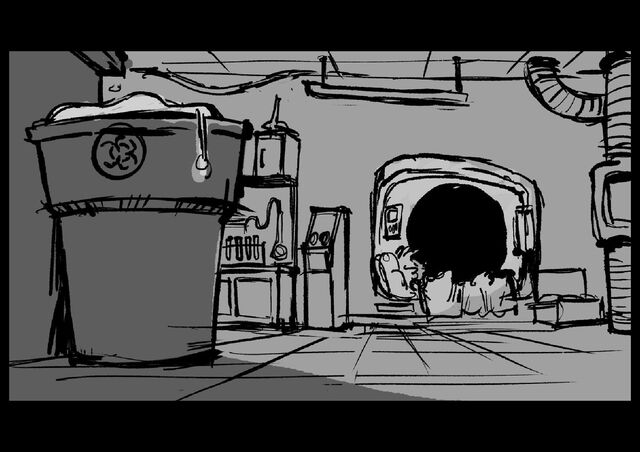 As Gilbert reluctantly tries to sleep in his cramped nook off to the side of the space station science lab he's been placed in, he hears a mysterious chemical reaction take place on the other side of the room.